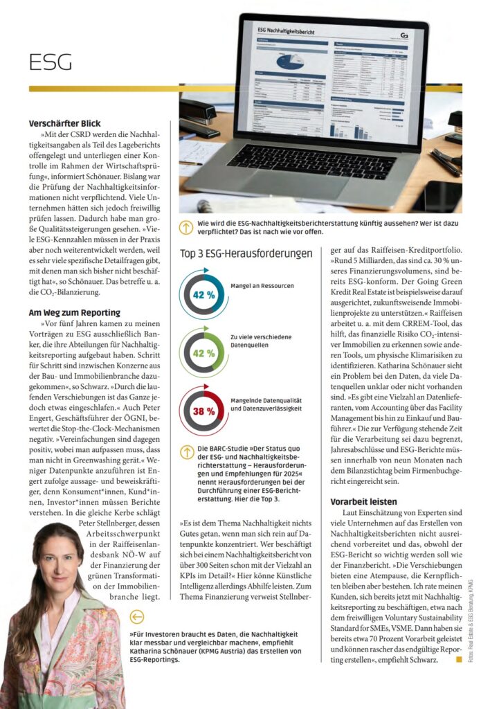 Und zweitens wird dadurch die konkret messbare Vergleichbarkeit zur Basis für ein Benchmarking innerhalb der Immobilienbranche. Einfach salopp zu erklären, man sei nachhaltig, wird nicht mehr ausreichen. Man wird de facto den Beweis antreten müssen – und dieser wird konkret in Zahlen darstellbar und überprüfbar sein. Das sogenannte Greenwashing wird somit der Vergangenheit angehören, ein fundiertes ESG Zahlenwerk sowie der transparente Benchmark unter den Marktteilnehmern wird state of the art sein.